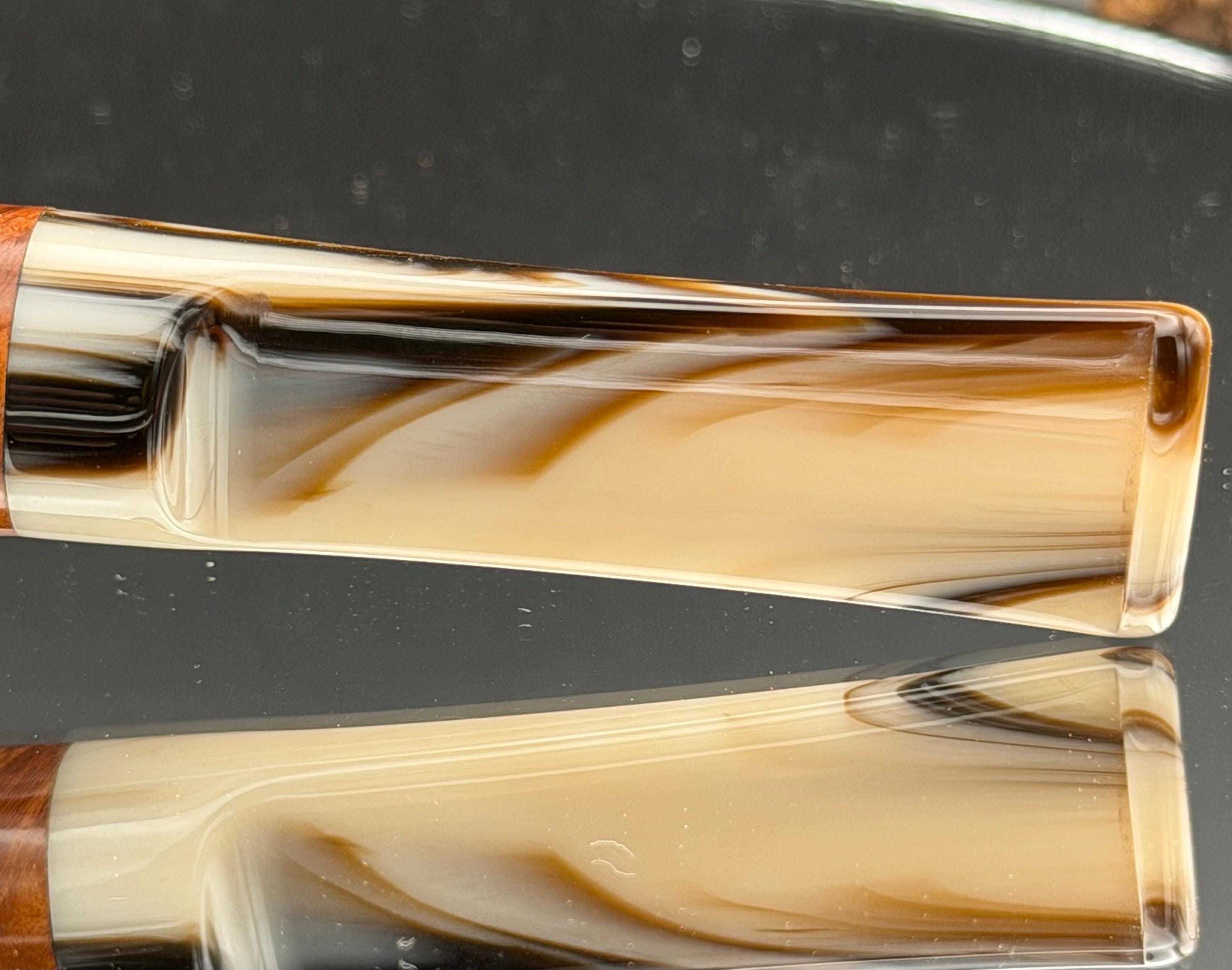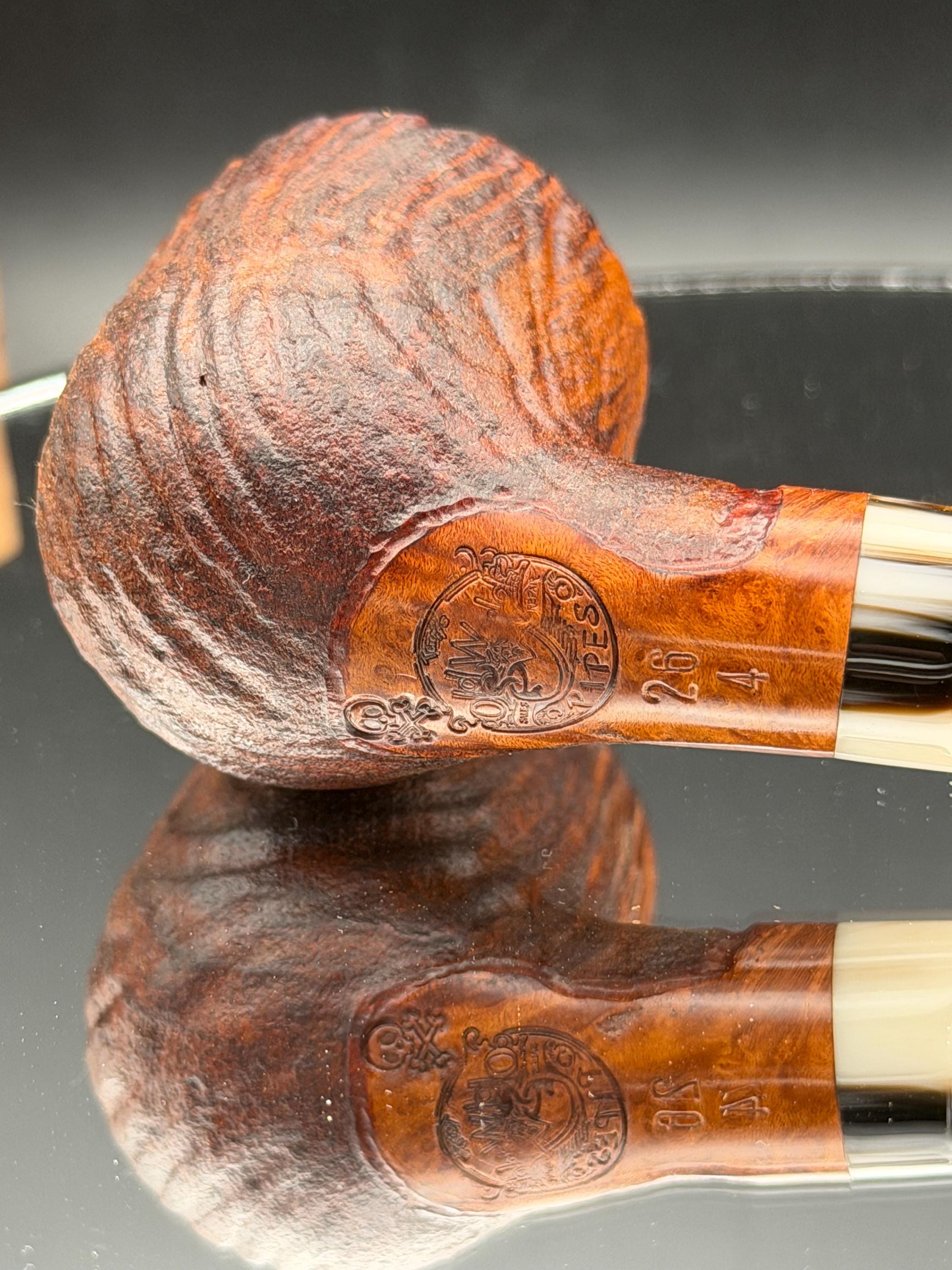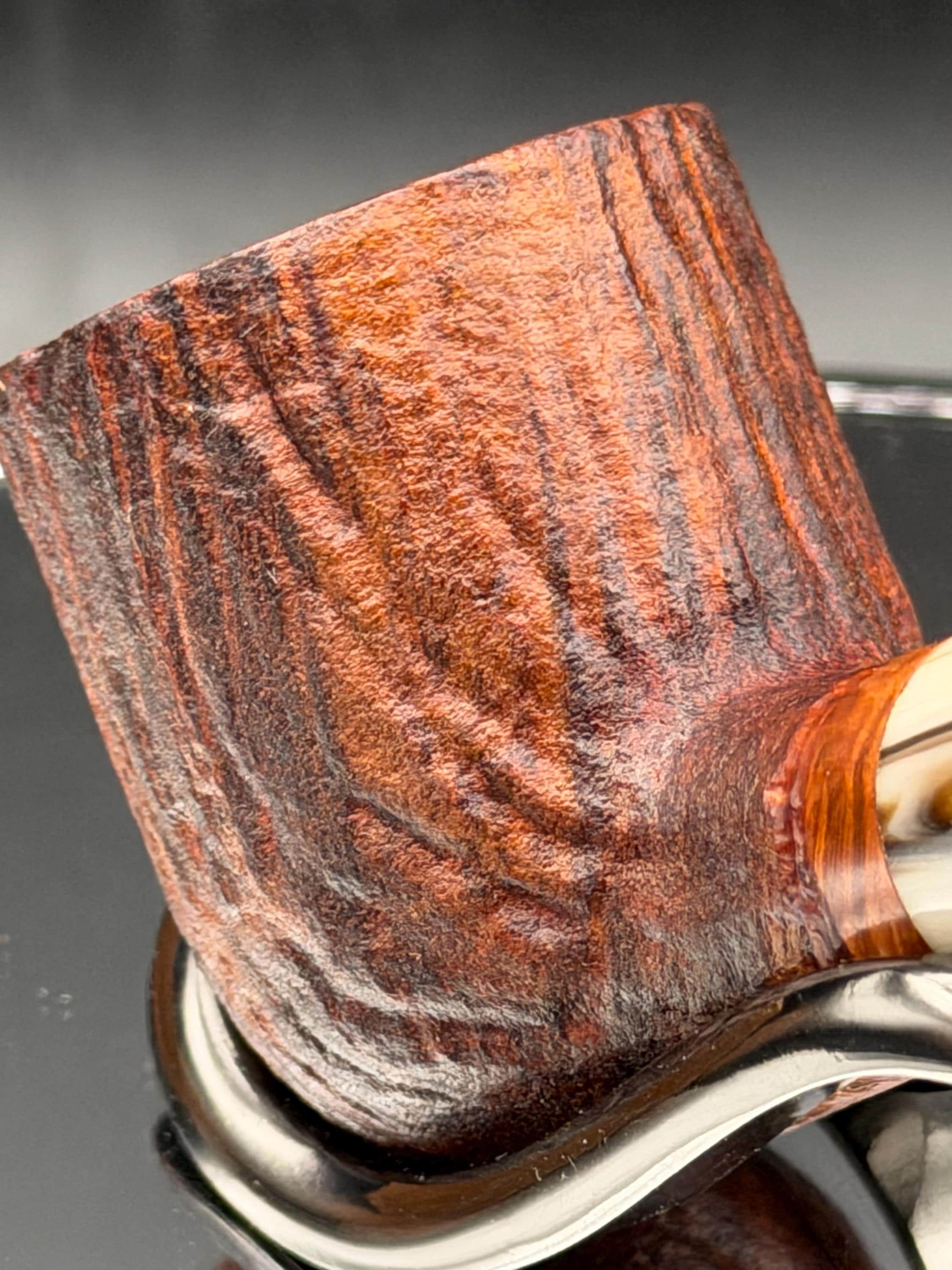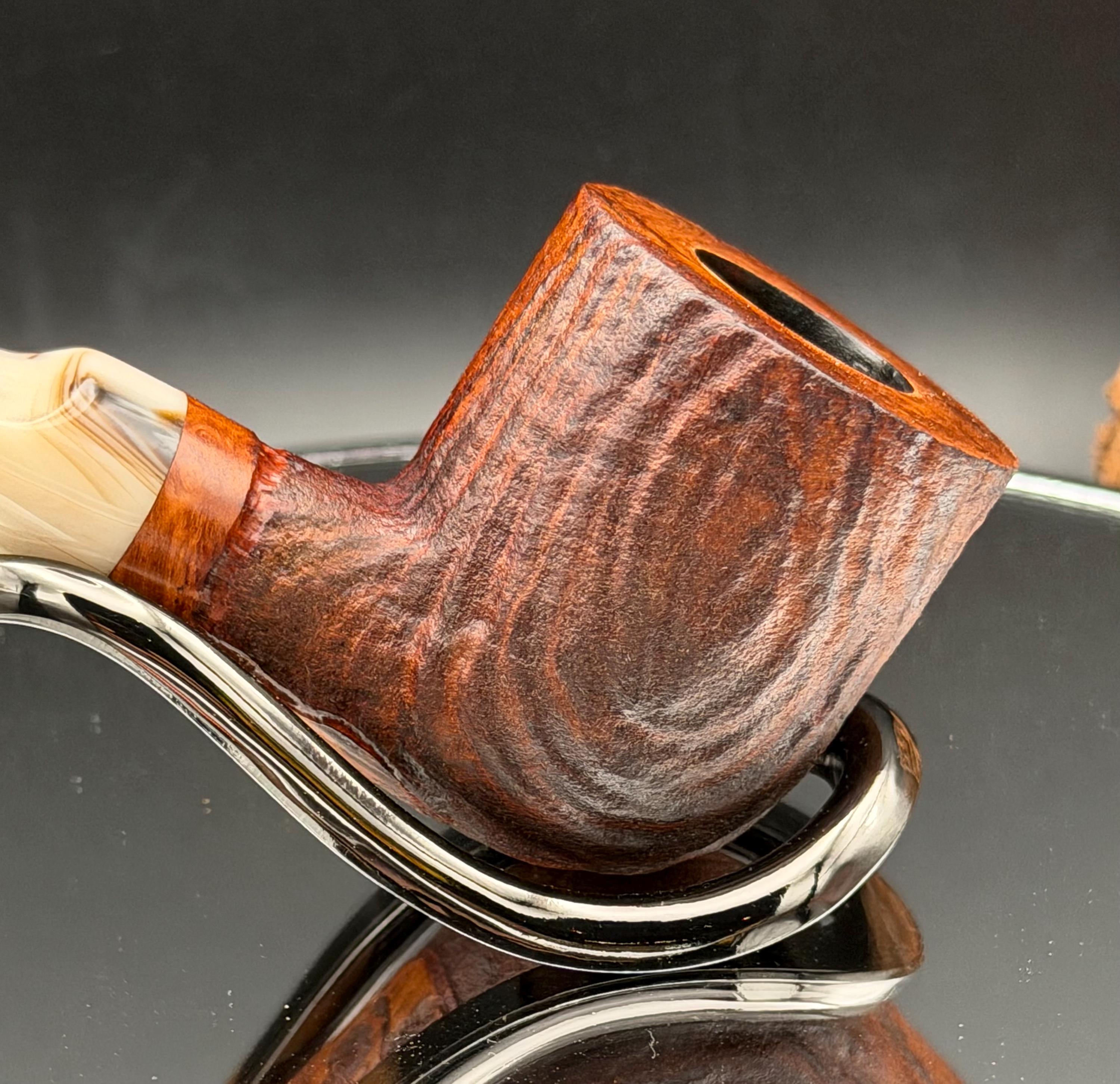 This is a handmade briar pipe that has been carved, sanded, sandblasted and polished by hand for several hours .A nice acrylic custom made stem was machined to fit perfectly. This one is non filtered. A very nice daily smoker. Bowl is a smaller diameter on this one to accommodate the shorter length of this pipe at 3/4” x 1.5” and has been coated with a carbon starter.